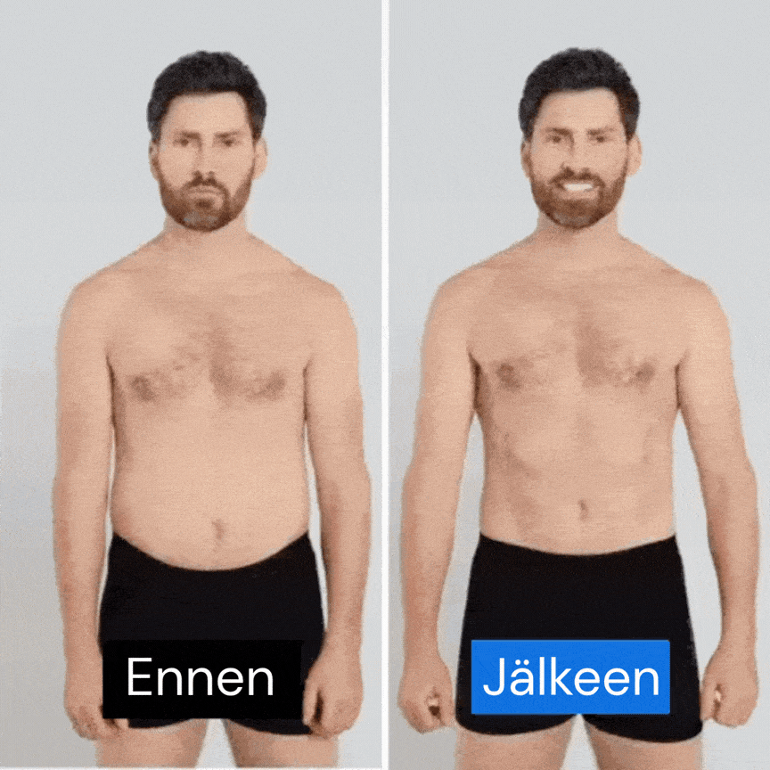 • 100 % raportoi kiinteämmät, määrittyneemmät vatsalihakset